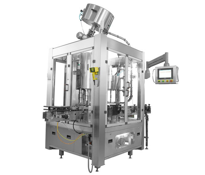 These cappers are suitable for plastic screw caps. In this the caps are placed on the bottle and then rotated so that the cap screws onto threads on the neck of a bottle. These are of two types-pick and place and magnetic type.